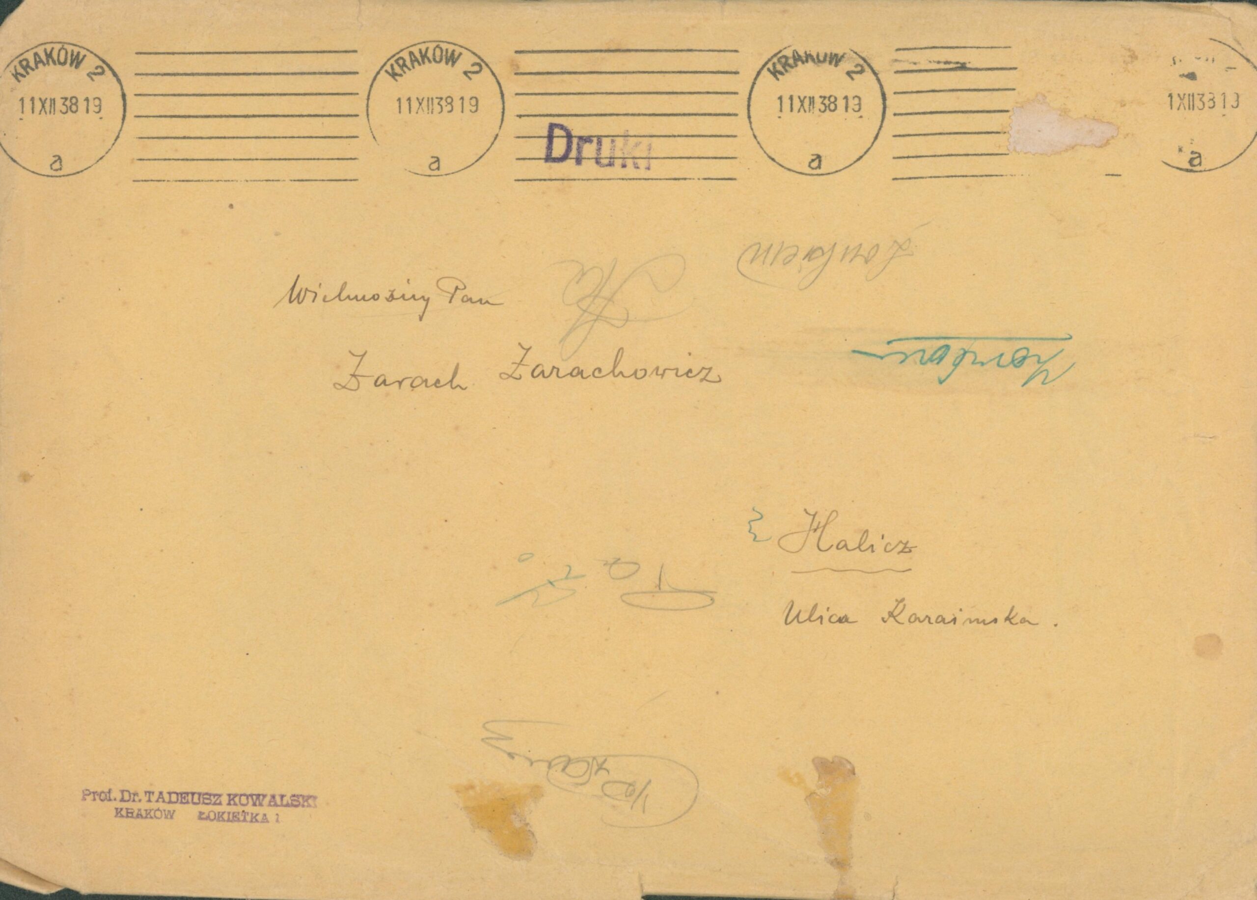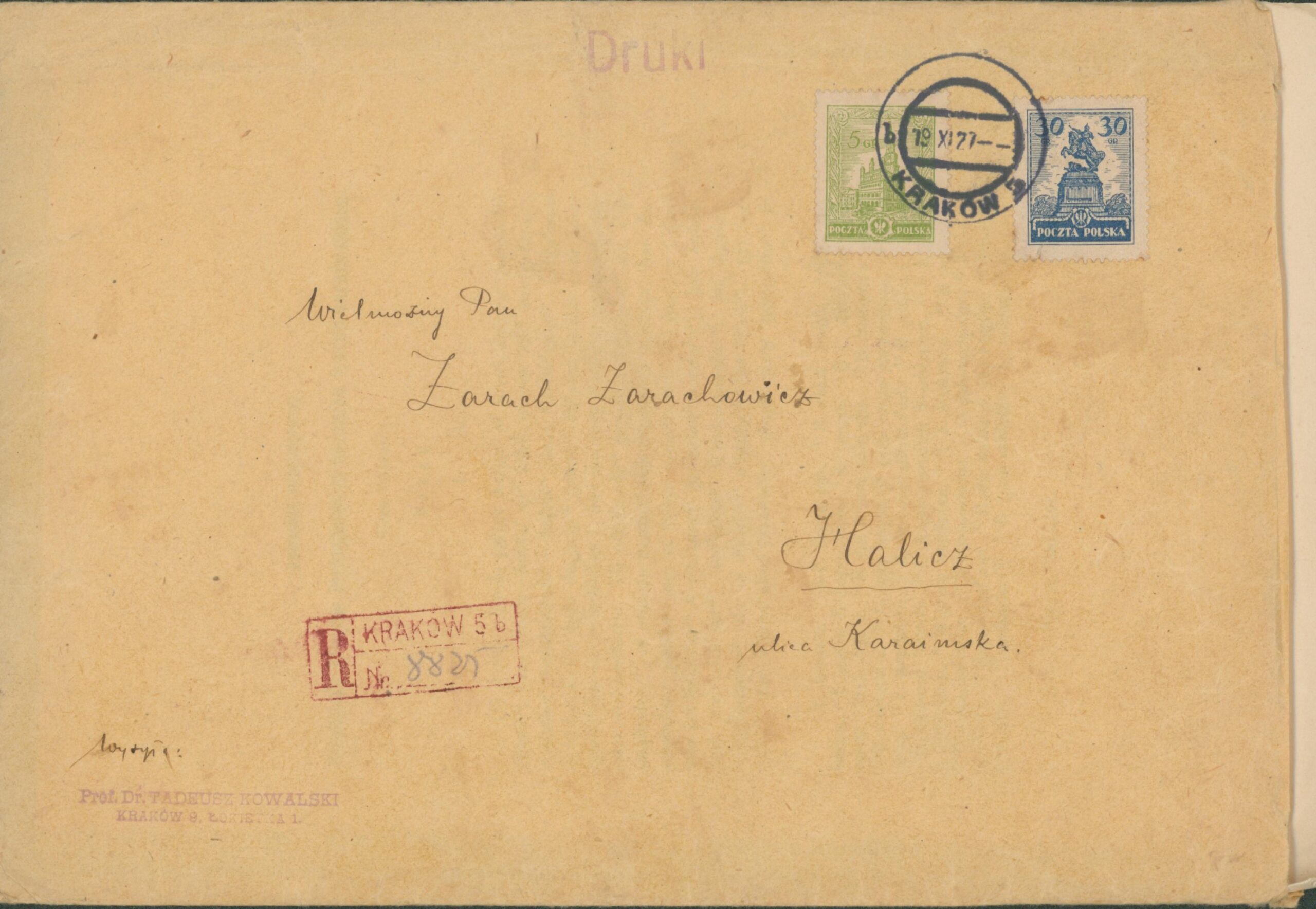 Letter with a separate reprint of an article by Tadeusz Kowalski to Zarach Zarachovich Epistolary heritage