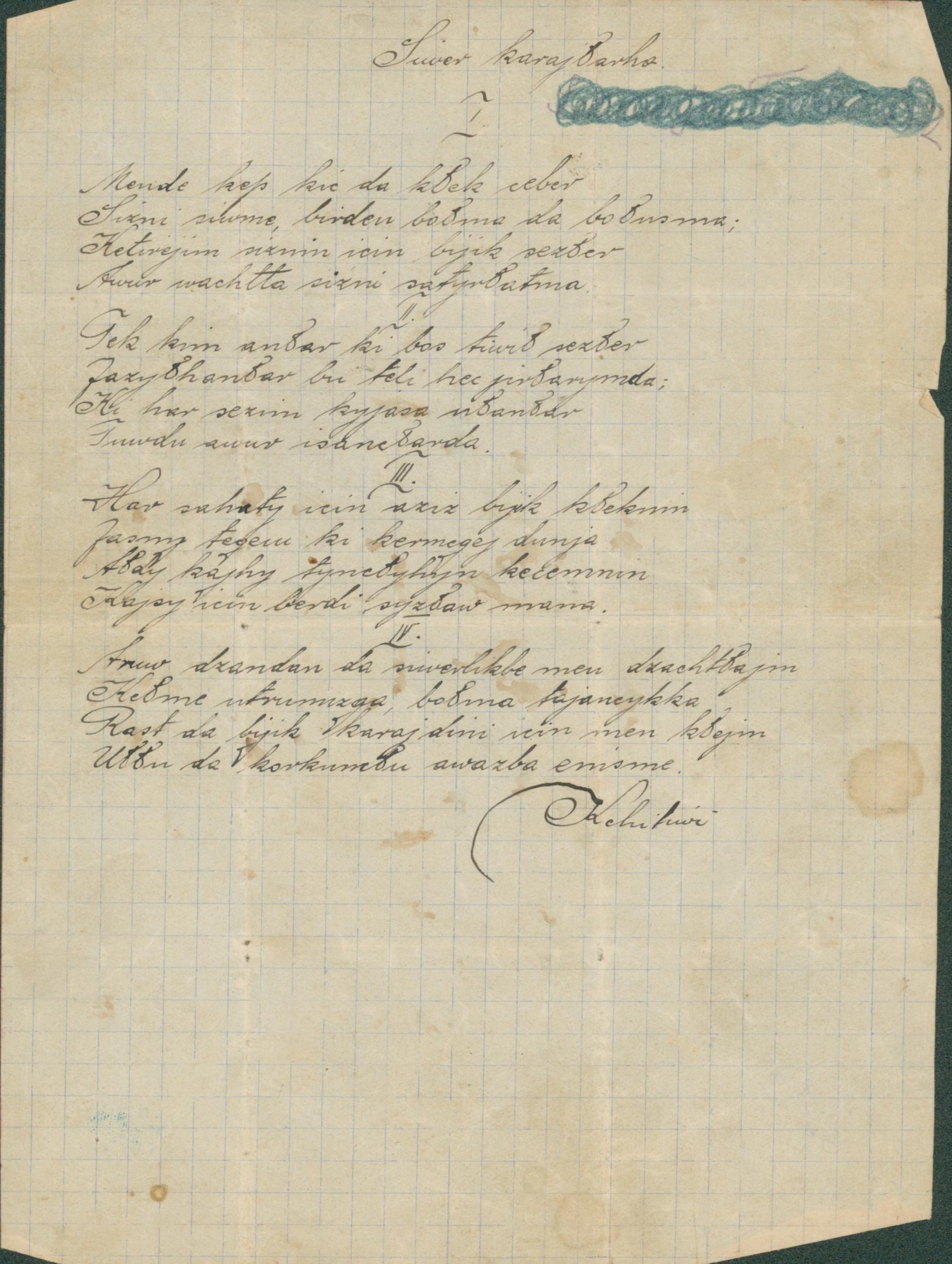 The handwritten text of the song “Jalbarmak”