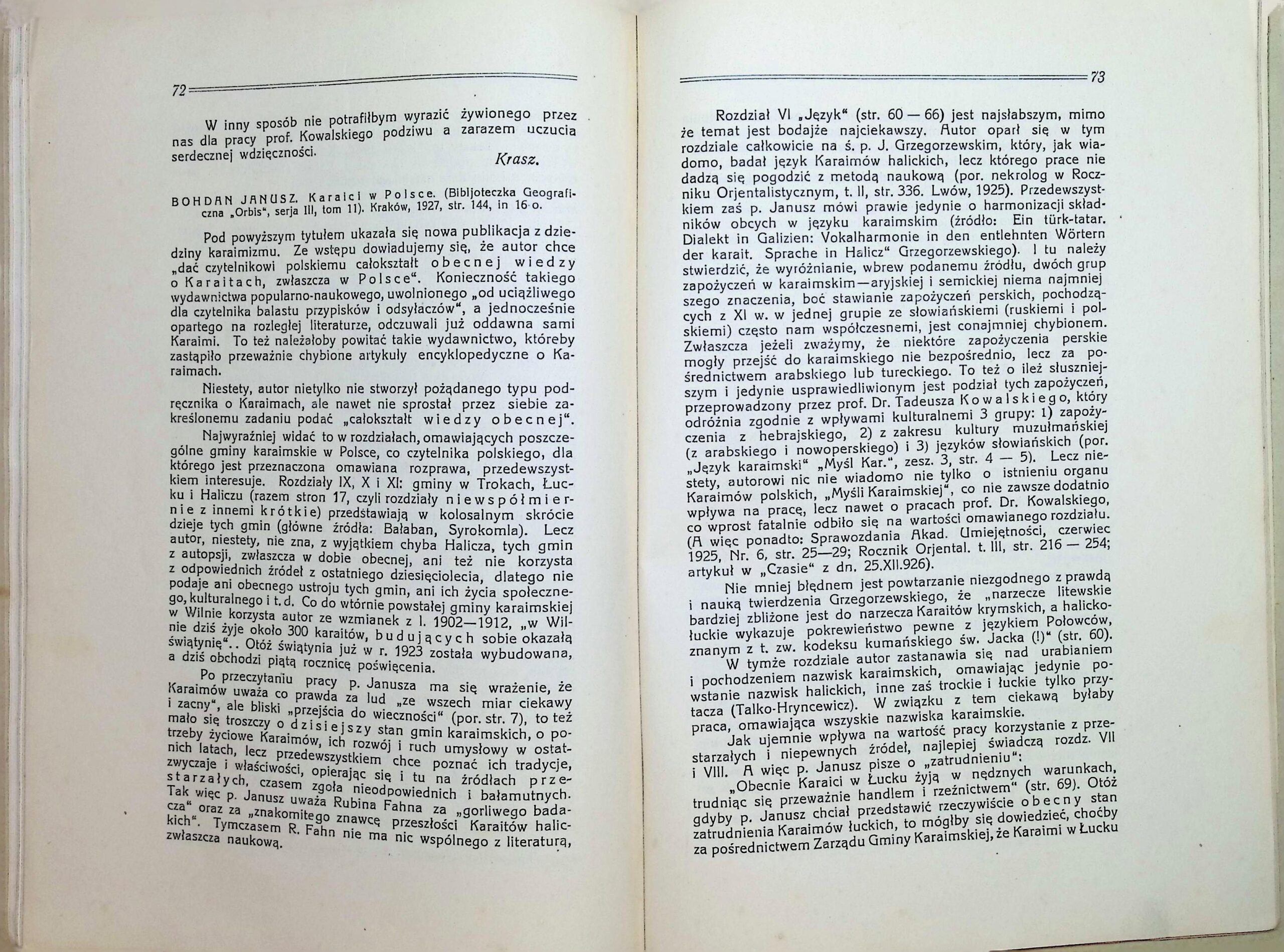 Опис : Періодичне видання караїмів присвячене історії та культурі, виходило з 1924 по 1939 рр. у Вільно, та з 1946 по 1947 рр. у Вроцлаві. Публікувалося польською мовою, до редколегії входили караїми з Галича – Захарій Новахович (1883-1960) і Зарах Зарахович (1890-1952).