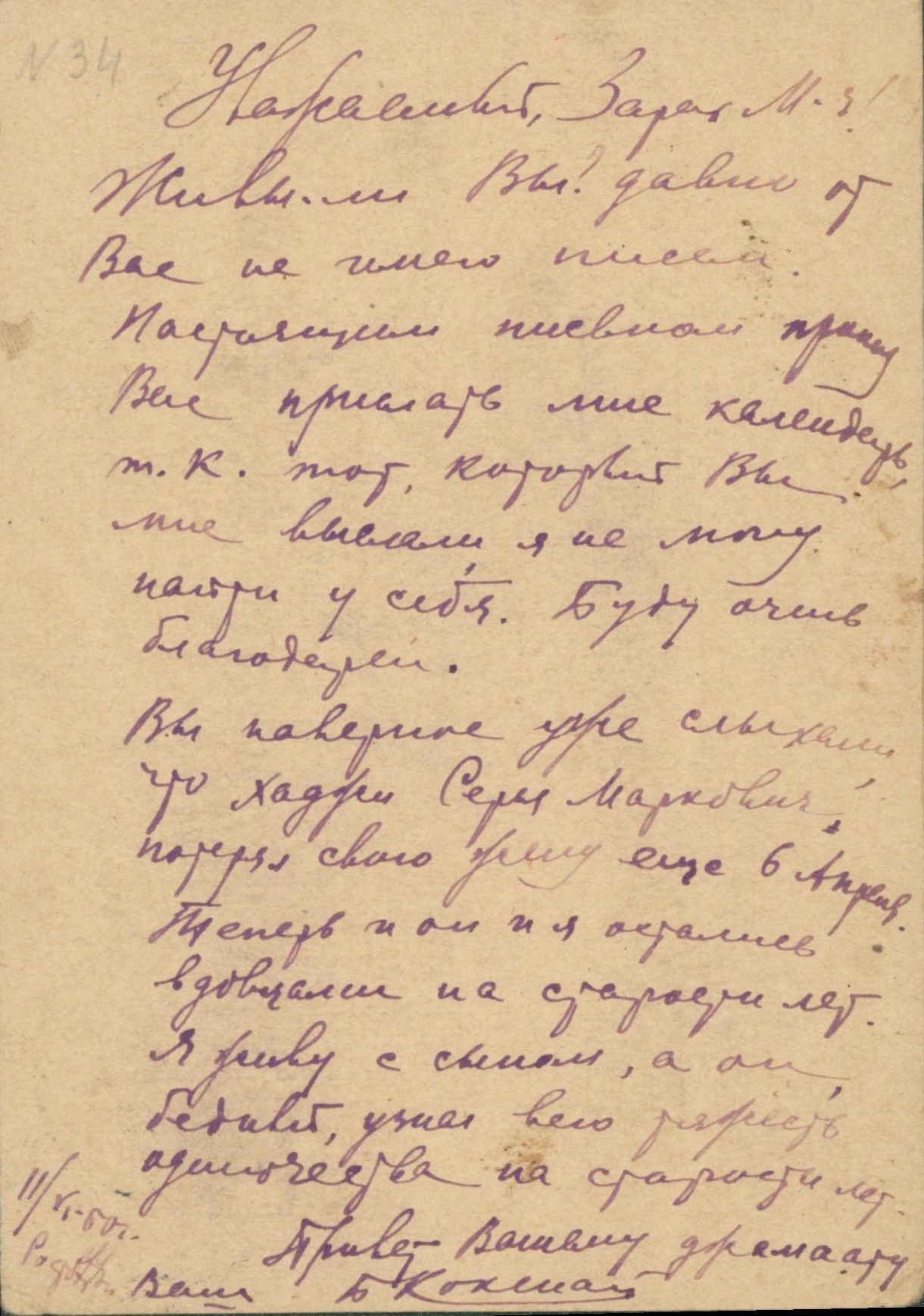 Postcard to Zarakh Moiseyevich Zarakhovich Epistolary heritage Title: Postcard to Zarakh Moiseyevich Zarakhovich Date: June 2, 1960 Description: Postcard addressed to Zarakh Zarakhovich from Boris Kokenaia from Rostov-on-Don Inventory number: none