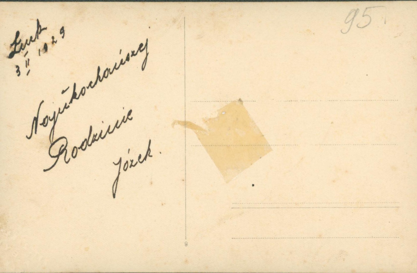 Опис: на фото з ліва на право – Йосиф Шулімович (Галич), Міхал Новіцький (Луцьк), Мойсей Новіцький (Луцьк), Захаріяш Шпаковський (Луцьк). На звороті фото напис : “Найкоханішій родині, Йосиф. Луцьк, 3.ІІ.1929.