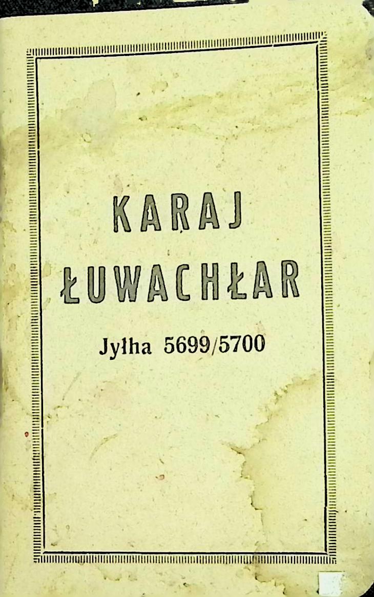 Karaj Luwachlar Книги, Роки Назва: Karaj Luwachlar Дата: 1939 р. Опис: Karaj Luwachlar. Jylha 5699/5700 jaraytylmahyna dunjanyn. Караїмський релігійний календар укладений газзаном Рафалом Абковичем Інвентарний номер: відсутній