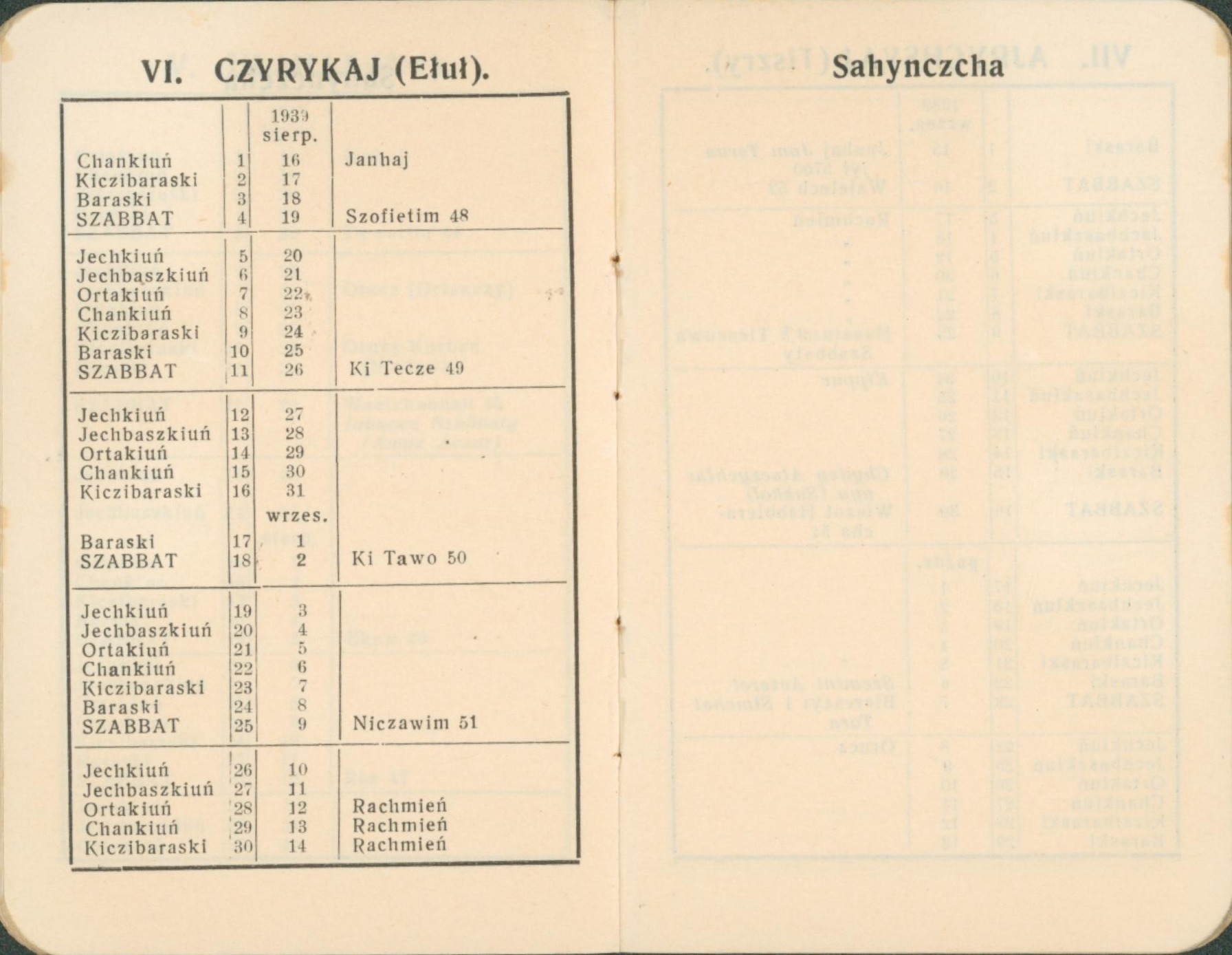 Karaj Łuwachłar Книги, Роки Назва: Karaj Łuwachłar Дата: 1939 р. Опис: Karaj Łuwachłar – караїмський релігійний календар на 5699-5700 роки від створення світу, уклав газзан Рафал Абкович Інвентарний номер: НЗДГ КН-6585 РКГ-682