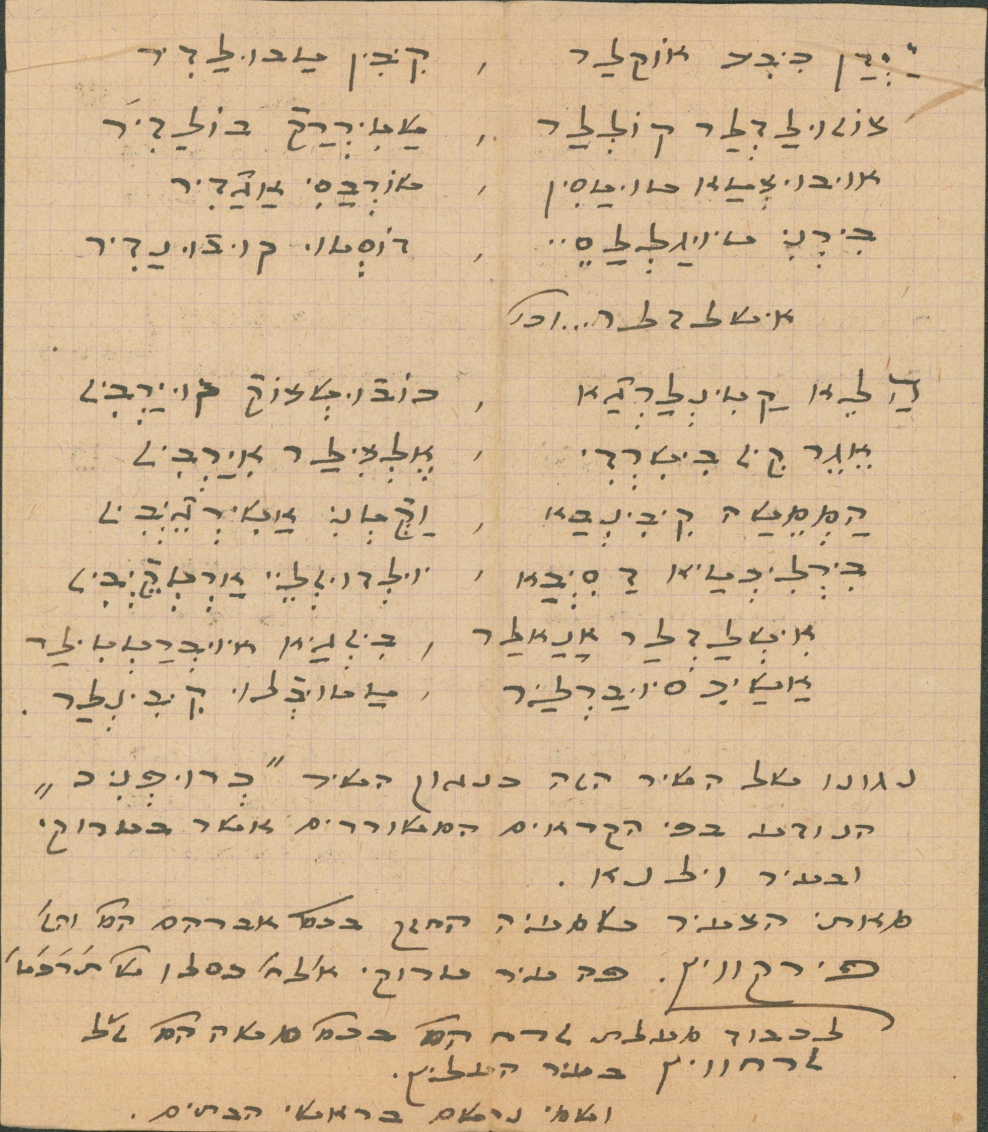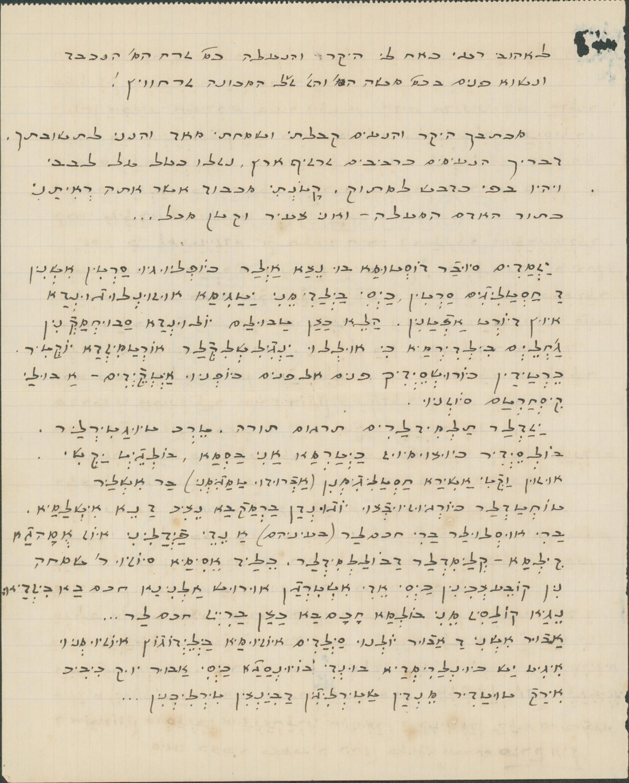 Лист до Зараха Зараховича з Тракаю на івриті Епістолярна спадщина Назва: Лист до Зараха Зараховича з Тракаю на івриті Дата: 14.10.1924 р. Опис: Лист Зараху Зараховичу від Шимона Фірковича з Тракаю (Литва) Інвентарний номер: відсутній