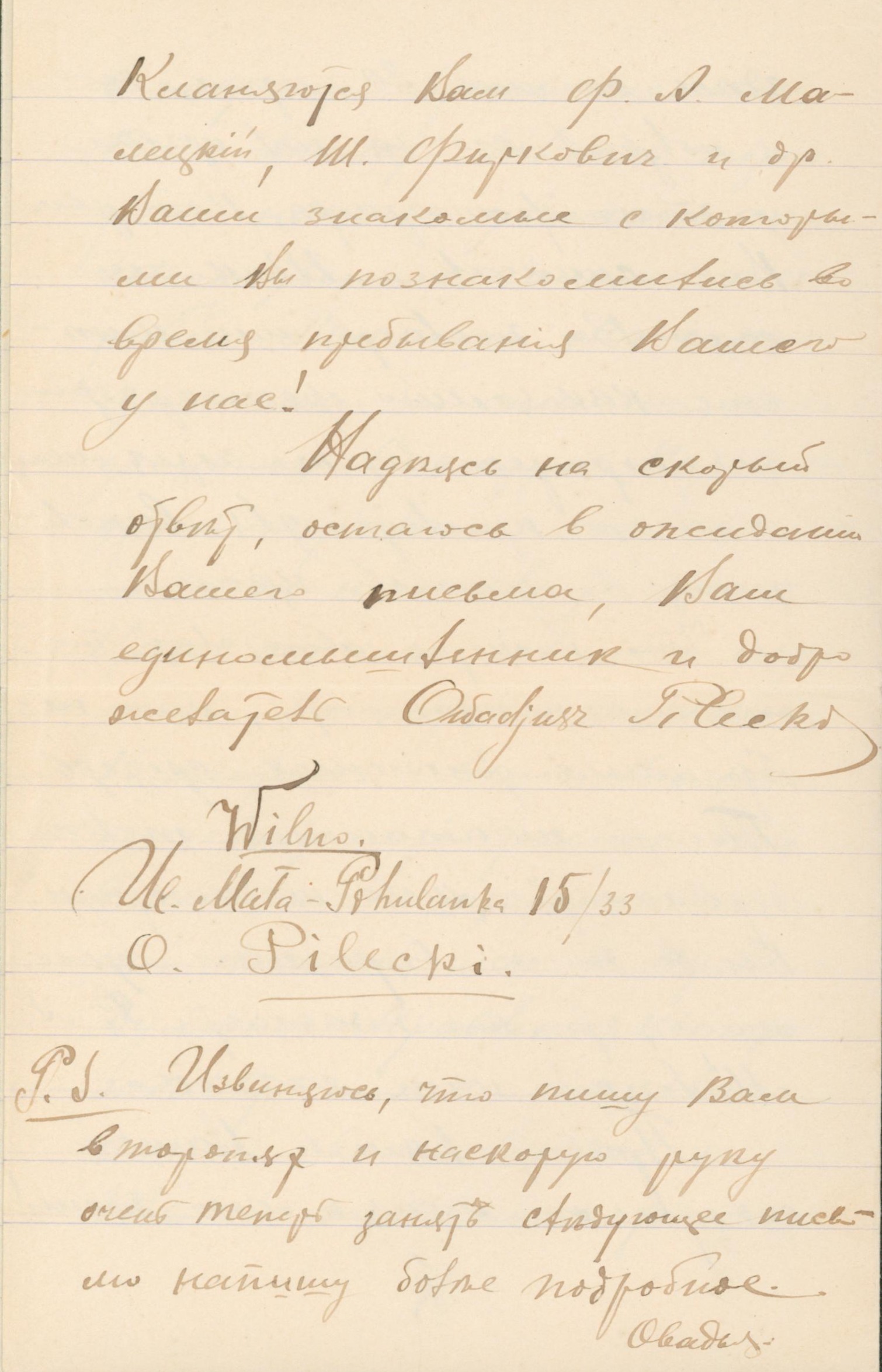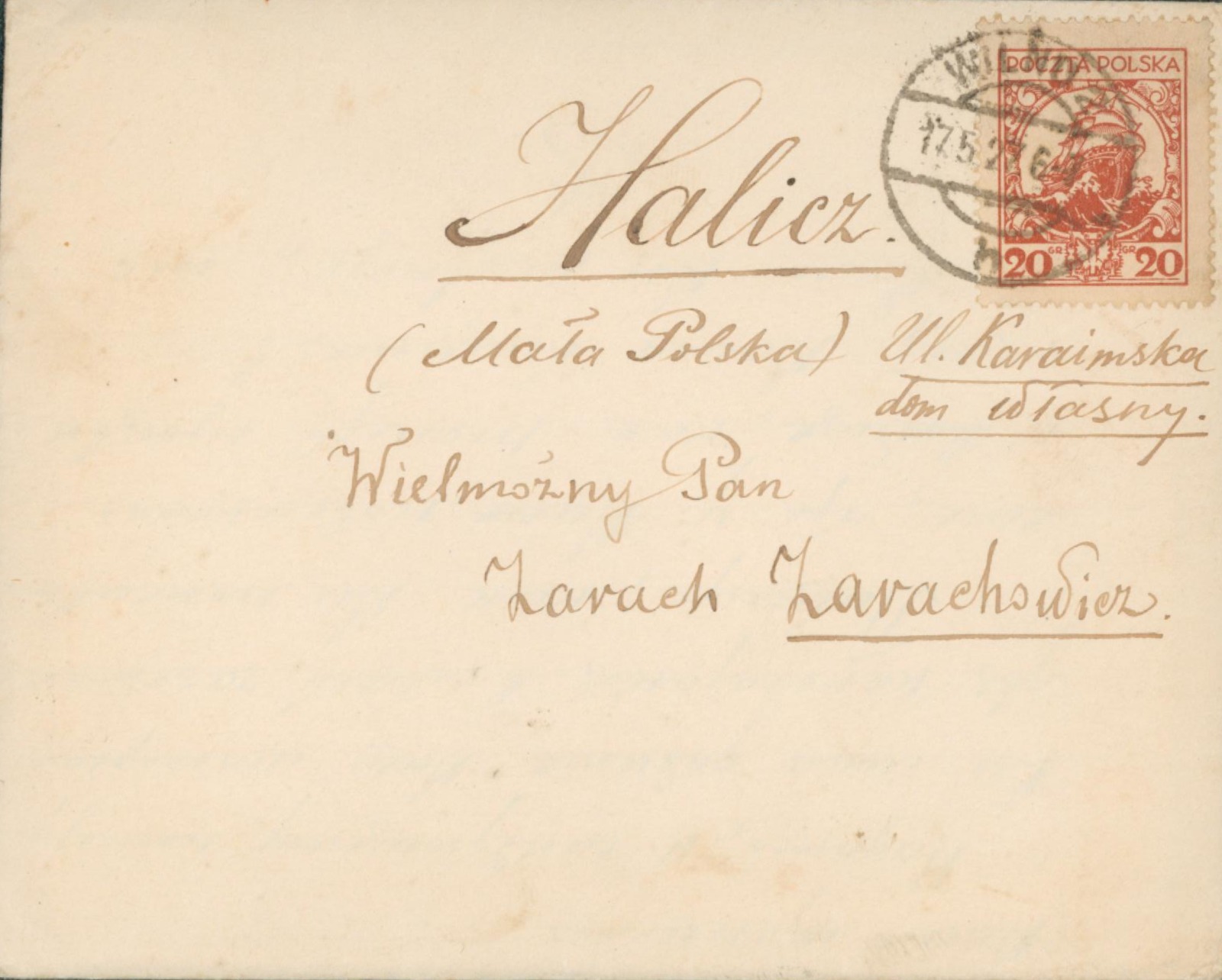 Опис: Лист адресований Зараху Зараховичу від Овідія Пілецького з Вільнюса (Литва) у справі видання газети “Караїмське слово”