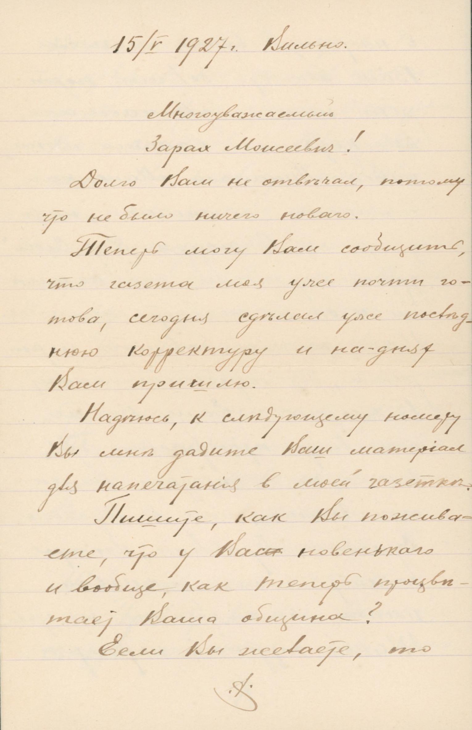Лист до Зараха Зараховича з Вільнюса