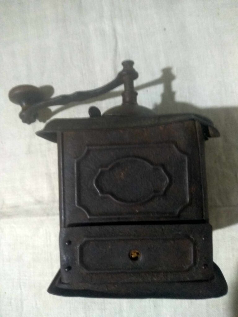 Ручний млинок для кави Предмети побуту Дата: поч. ХХ ст. Опис: Кавомолка належала родині Єшвович Мойсея та Амалії. До Музею караїмської історії та культури передала Яніна Львівна Єшвович (1930-2003) – їхня онука Інвентарний номер: НЗДГ КН-6077 РКГ-176