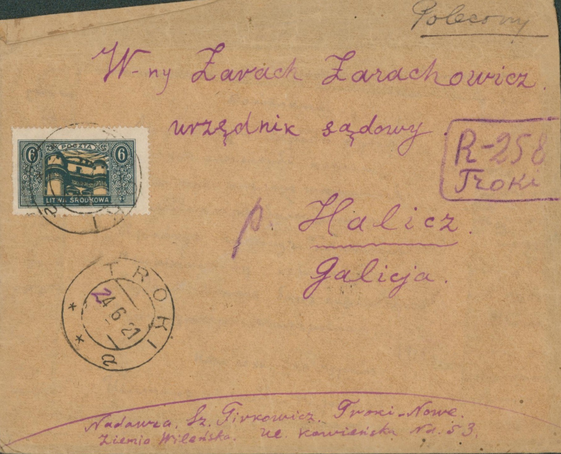 Лист з Тракаю до Зараха Зараховича судового урядника в Галичі