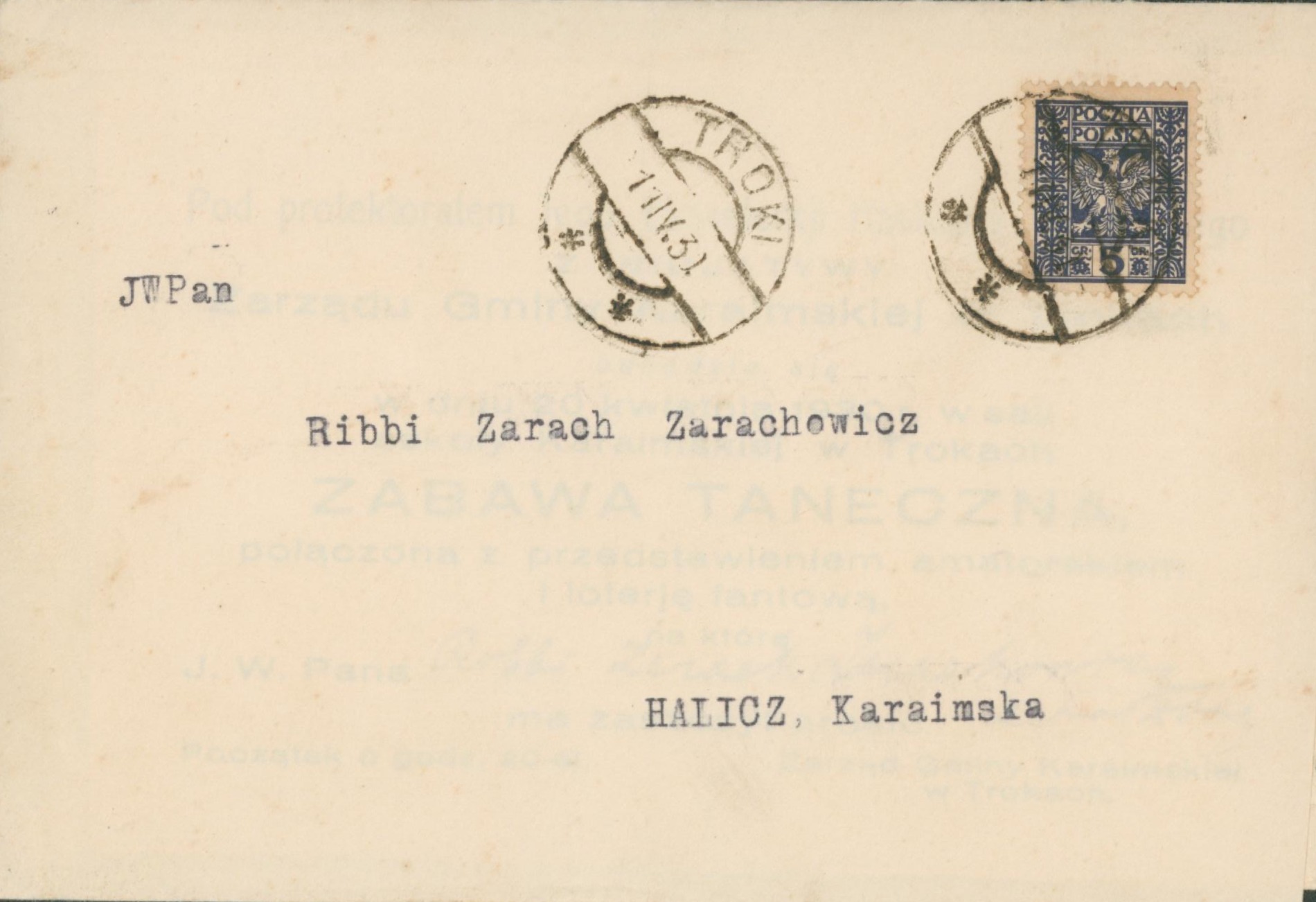 Лист до Зараха Зараховича від Шимона Фіроковича з Тракаю