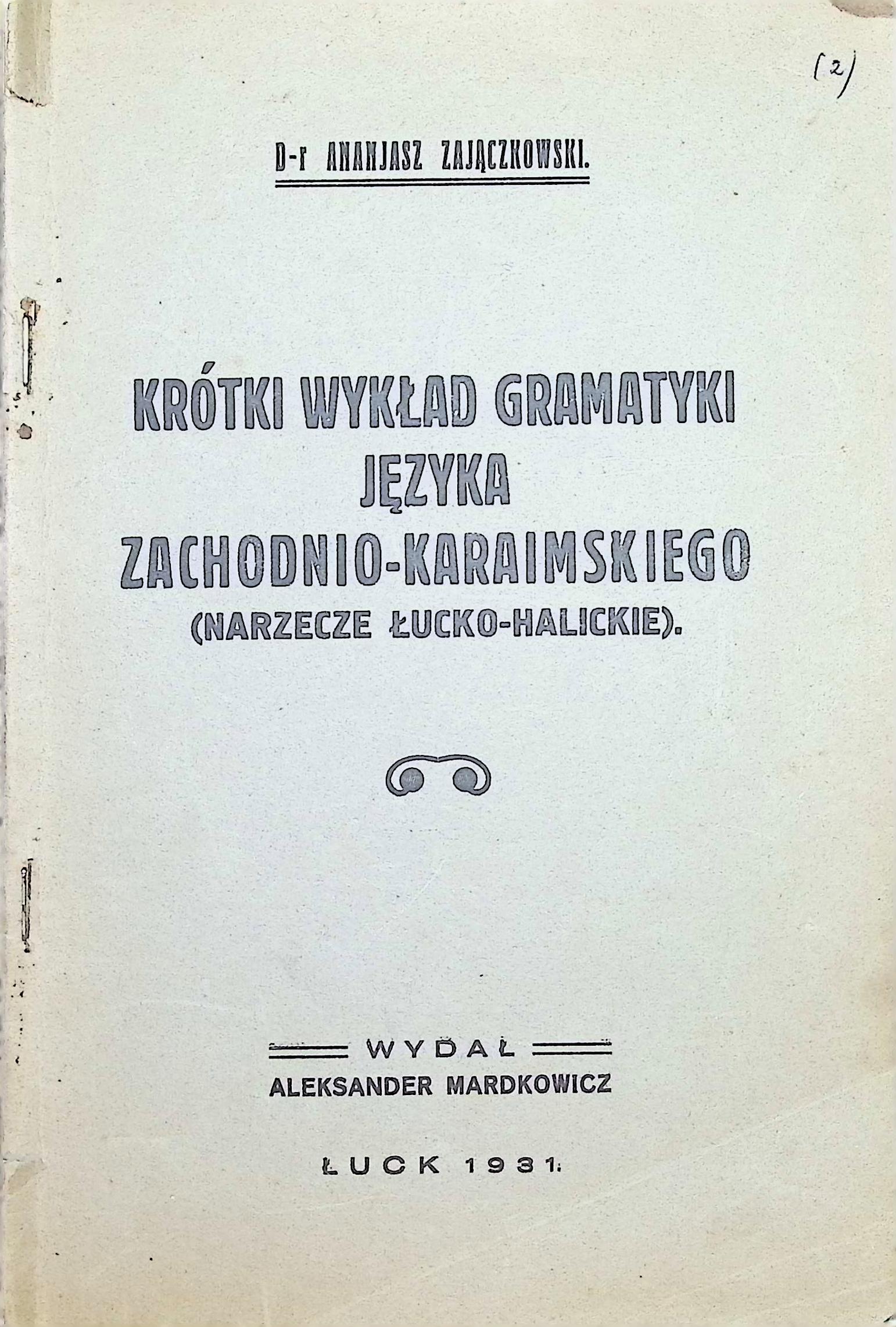 D-r Ananiasz Zajączkowski. Krótki wykład gramatyki języka zachodnio-karaimskiego (narzecze łucko-halickie) Книги, Роки