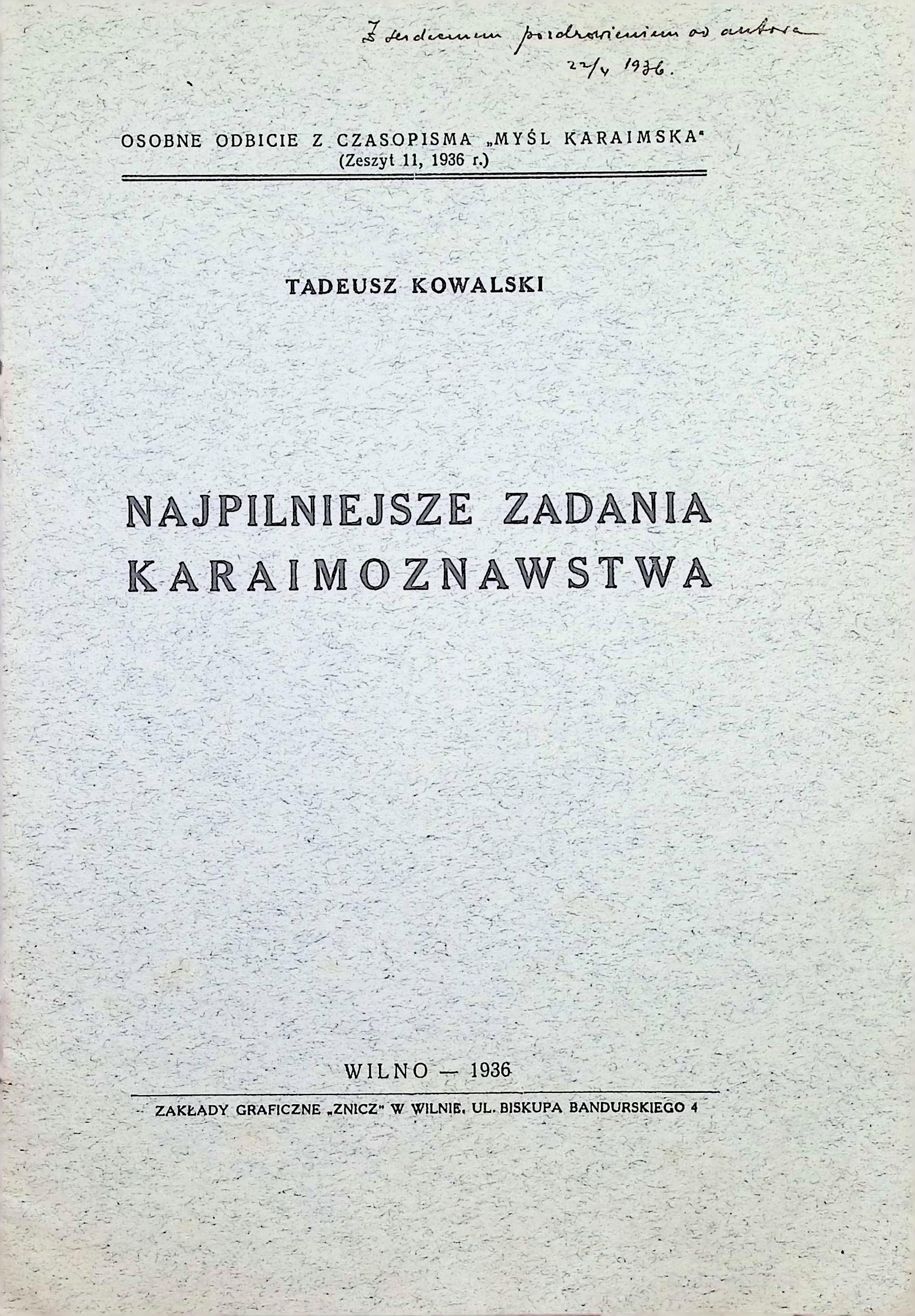 Tadeusz Kowalski. Najpilniejsze zadania karaimoznawstwa